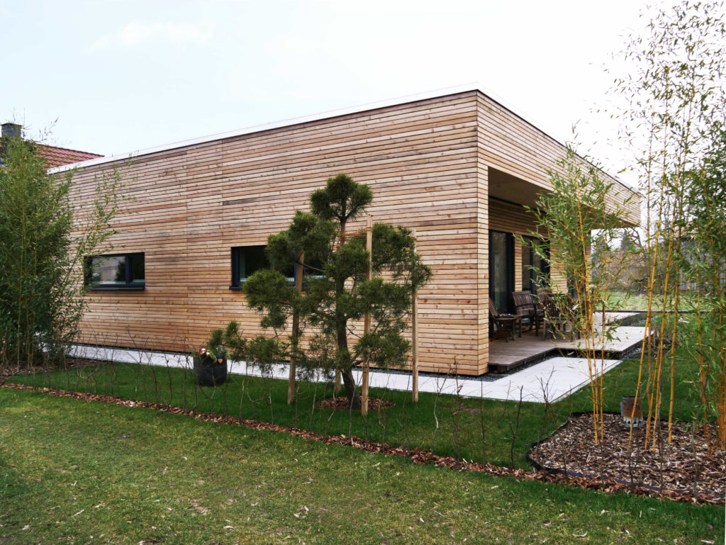 Neubau Bungalow, Calberlah Außenperspektive | GartenseiteAußenperspektive | EingangAnsicht NordAnsicht OstAnsicht SüdAnsicht WestTerasse bei NachtZwischenstand Außenansicht